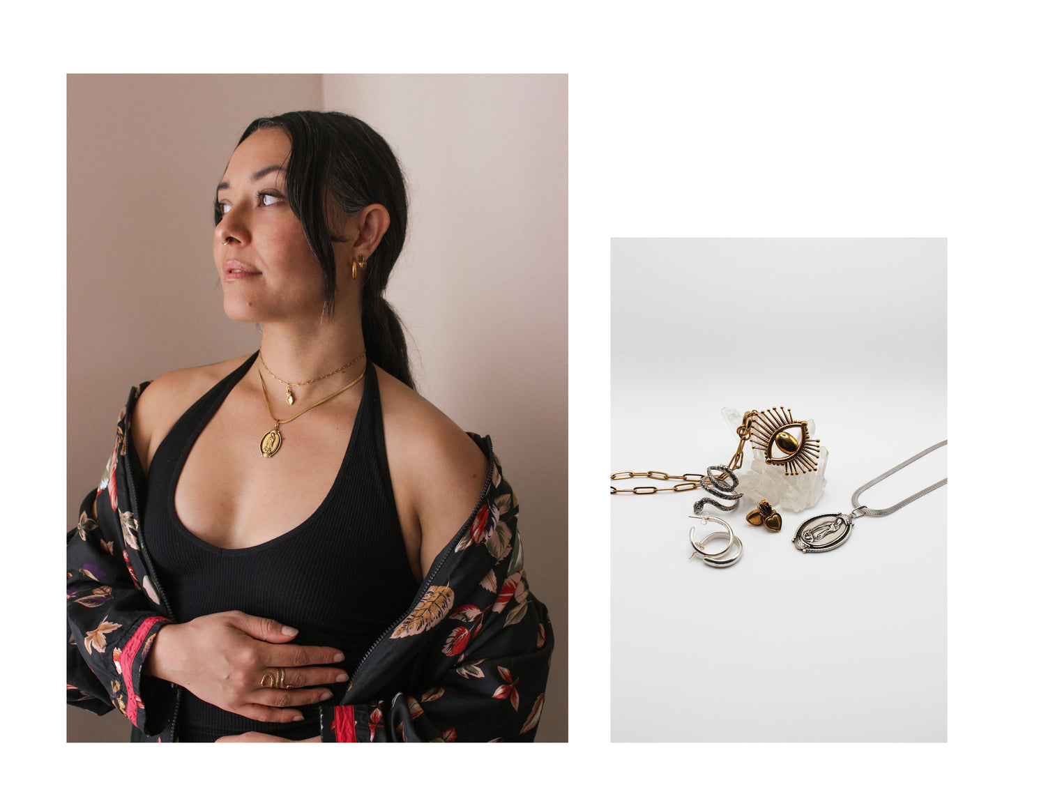 Adornments imbued with meaning, designed to honor the beauty of complex identity and the stories we carry. Each piece transforms symbols, myths, and traditions into wearable reminders of the experiences and histories that shape us.